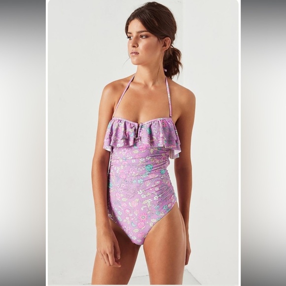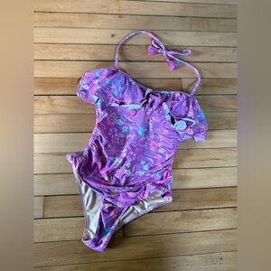Spell & the Gypsy collective the Gypsy collective flower child frill one piece size xs. Light purple floral pattern swimsuit one piece open back cut out. Girly preppy coastal beach swim