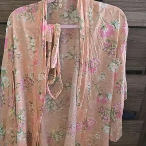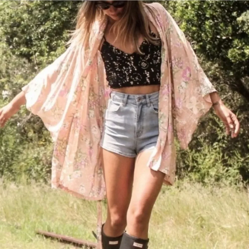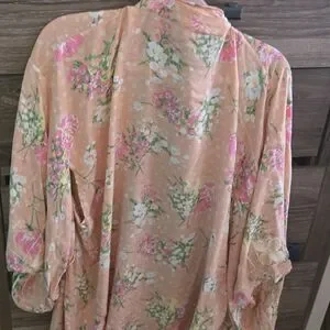 Light pink floral kimono cardigan. Perfect for layering.