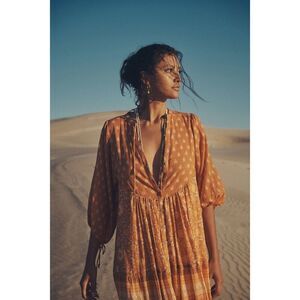 Spell & The Gypsy Utopia Short Sleeve Dress in Terracotta. Spell's Utopia is all about a tropical dreamscape with vast, rolling sand dunes and ocean-swept palm fronts - the feeling of freedom. Whether traipsing off to some far-off place, dreaming of your next getaway or finding a quiet utopia close to home, we know you'll love these pieces. Utilizing organic cotton, hemp, responsibly sourced cellulous fibers, linen and recycled synthetics, Utopia's fibers promise a lower impact on the planet than conventional alternatives.