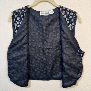 Spellbound Rayon Navy Blue White Floral 90's VTG Vest Button Front Size Large
