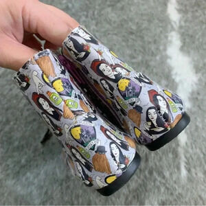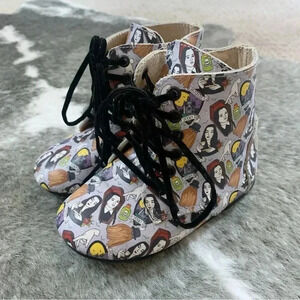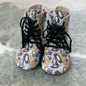 Here’s a super cute pair of boots by Spellbound Soles. Size 8. Love the Addams Family theme. Great condition and nice quality! Perfect little spooky pair of shoes for your little one! :)