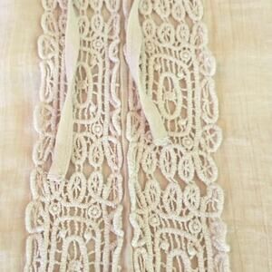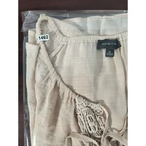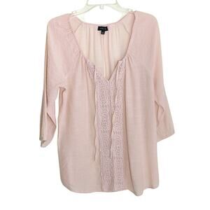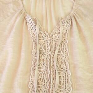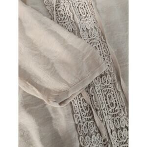 Spence Boho Tunic Top Women's Sz M Tan Adjustable Tie 3/4 Sleeve Pullover Lace