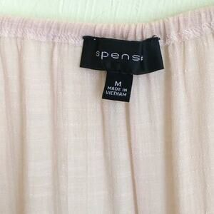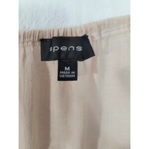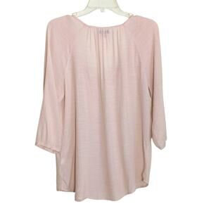 Spence Boho Tunic Top Women's Size M Tan Adjustable Tie front 3/4 Sleeve Pullover