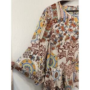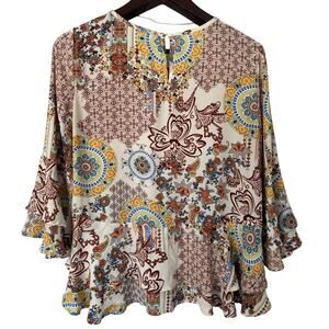 Spence Floral Boho Bell Sleeve Blouse Size Large