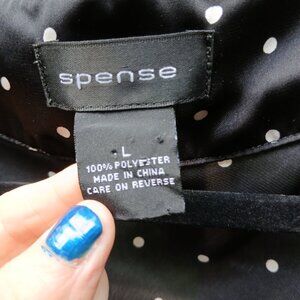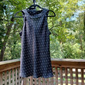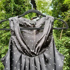 Spence Stylish White Polka Dots on Black Sleeveless Cowl Neck Tunic Top Sz L