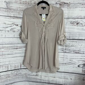 Spence Top Womens Size Small V neck Roll up sleeves boho embroidered Blouse New