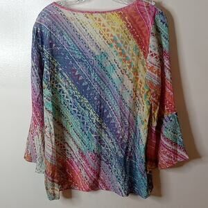 Spence Women's Rainbow Flowy Flutter Sleeve Blouse. Medium Art to Wear. Boho