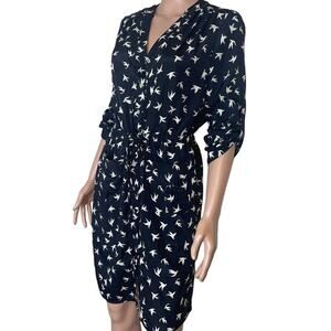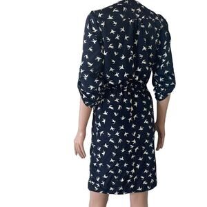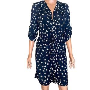 Spence brand black with white dove print 1/2 button elastic waist dress SZ 4