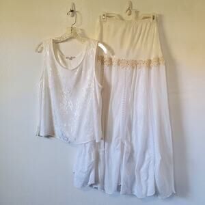 Spencer Alexis 2pc Skirt Set Womens XL-1X Ivory Satin Lace Sleeveless Maxi Wedding Bridal Boho Bohemian Style