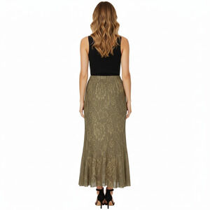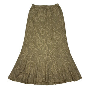 Spencer Alexis Metallic Lace Lined Trumpet Skirt Champagne Gold Stretch Long 2X