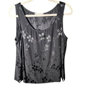 Spencer Alexis Sz L Vtg 90 Y2K Black Burnout Floral Side Slit Tank Whimsygoth