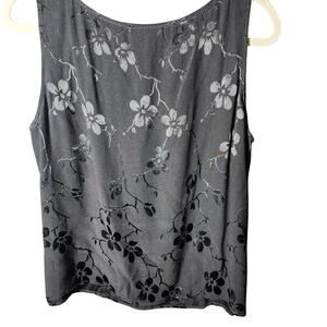 Spencer Alexis Sz L Vtg 90 Black Burnout Floral Side Slit Tank Top Whimsygoth, measurements in photos, EUC