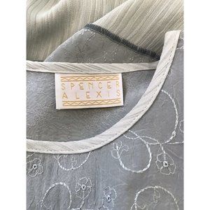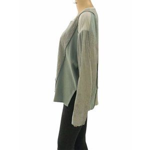 Spencer Alexis Top 14 Green Long Sleeve Mixed Fabric Block Patchwork Floral Vtg