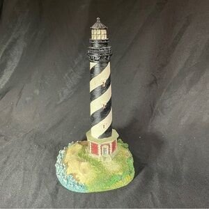 Spencer Collin, signed, Cape Hatteras, Vintage, Elegant black and white lighthouse figurine, perfect for adding a nautical touch to your home decor.