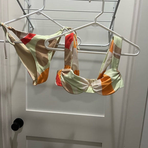 Vibrant and stylish bikini set featuring a colorful pattern. Perfect for a day at the beach or pool. Underwire no padding.