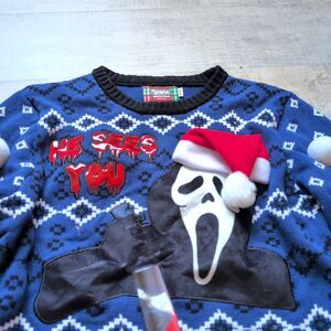 Spencer Scream Face Christmas Ugly Sweater Size M Light Up And Screaming Sound