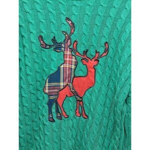 Spencers Medium Cable Knit Christmas Holiday Frisky Reindeer Novelty Fun Sweater