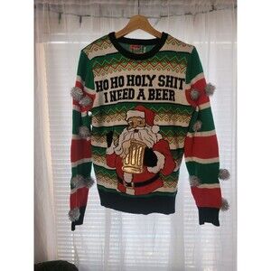 Spencers Ugly Christmas Sweater Mens Small Graphic Light Up Santa Needs a Beer