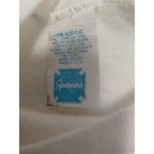 The Spencer's Vintage Child's Sweatshirt in size 3 is a cozy and festive addition to any child's wardrobe. Made in the USA from acrylic material, this white sweatshirt features a graphic print of a bear with the words "Beary Merry Christmas". With a crew neck and long sleeves, this pullover style sweatshirt is machine washable and perfect for winter wear. The vintage design adds a charming touch to this unisex kids' clothing item that is both stylish and comfortable for everyday activities. No stains or flaws.