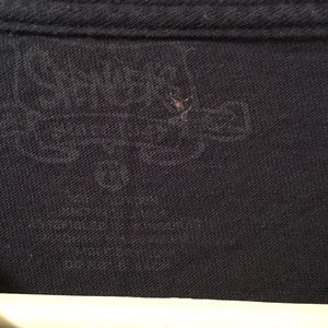 Hardly worn men's shirt. The size is a 2X but it fits like an XL. The color is a navy blue with white lettering