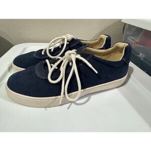 Spenco Camden Blue Suede Shoes Scalloped Trim Women Sneaker Size 9D
