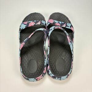 Spenco Fusion Slim Black Tropical Slide Slip On Comfort Sandals Women's Size 8