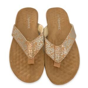 Spenco Hampton cheetah thong shoes Metallic print Size 9.5 measured 10” footbed