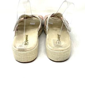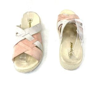 Spenco mauve multi sandals. Women's size 8. Platform height about 1.5". A few marks and signs of wear (see photos). In good pre-owned condition. Box not included.