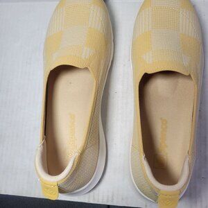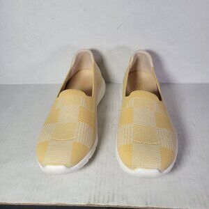 Spenco Women Comfort Stretch Ease Yellow & White Pattern Slip-On Sneakers Sz 10W