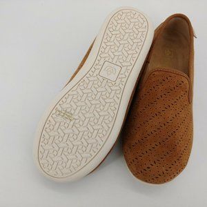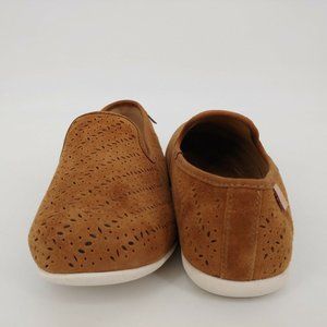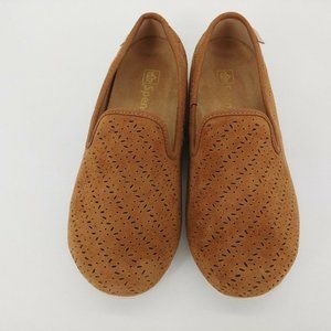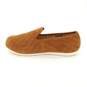 Spenco Womens Bailey Slip On Loafer Shoes Laser Cut Out Suede Brown 5.5D New
