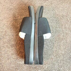 Spenco women's Sunset black wide band slip on sandals / slides. Vegan / manmade materials.