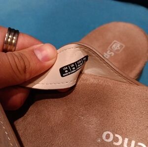 Spenco Womens Hampton Suede Camel Tan Silver Leopard Thong Comfort Sandals Sz8b