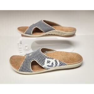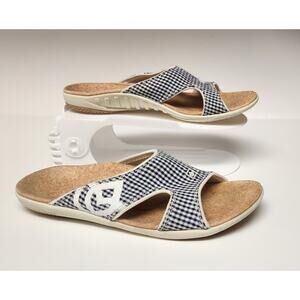 Spenco Women's Kholo Navy Blue/White Gingham Flat Sandals Size US 7.