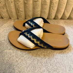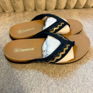 Spenco Women's La Paz Flip-Flop - Navy and Gold - Orthopedic Comfort 8.5