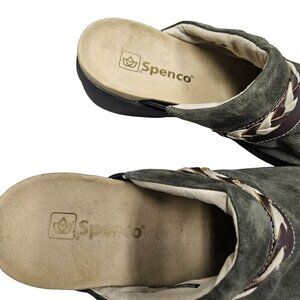 Spenco Womens Suede Leather Slip-On Mules Green Braided Strap Size 9