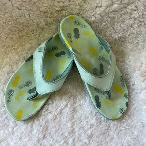 Spenco aqua blue Yumi Fruitopia Orthotic Slip On pineapple Thong Sandals…