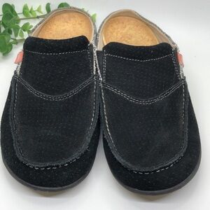 Spenco black suede with Aztec print accent Mules Women's shoes-Size 8B