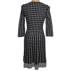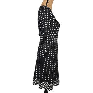 Spense 3/4 Sleeve A-Line Midi Polka Dot Sweater Dress Sz Small P Black & White