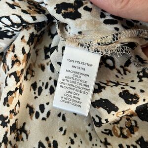 Spense Animal Print Button-Up Tunic Blouse Neutral Leopard Size Small