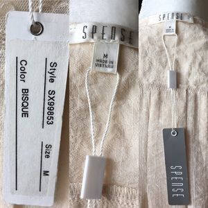 This Beige Swing Style Tank by Spense features a v-neckline embroidered by a tulle floral designs that is lined underneath. Flowy and light!