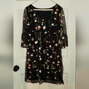 Spense Black Embroidered Floral Dress Sheer Overlay Size 4