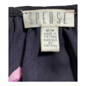 Spense Black Floral Flowing Smocked Top with Split Bell Sleeves Womens Medium