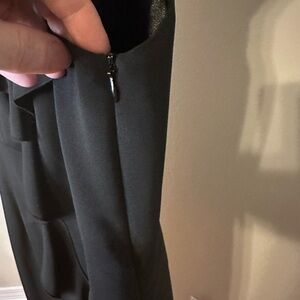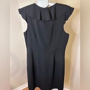 This sophisticated black sheath dress by Spense is perfect for cocktail events and nights out. It features a chic V-neckline with flutter sleeves and elegant ruffled detailing, creating a timeless and stylish look. The midi length adds a touch of class, making it a versatile addition to any wardrobe.