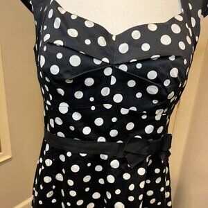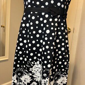 Spense Black & White Polka Dot Floral Print Midi Dress, Size 10