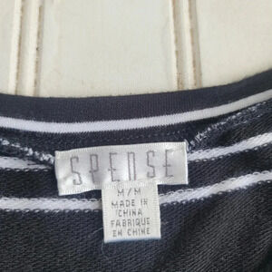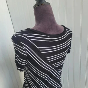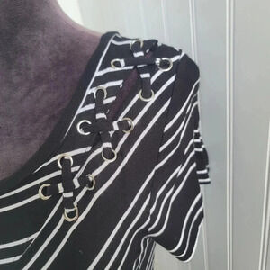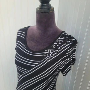 Spense Black White Striped Shirt Knee Length Dress Short Sleeve Lace Up Detail M