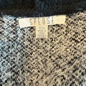 Spense Black, White and Gray Shrug Sweater. This versatile piece features a chic design that effortlessly complements any outfit, making it an essential addition to your wardrobe. super soft and cozy. Perfect for layering, See photo, purposely fuzzy texture. 😊Like new without tags. Loose oversize fit.
