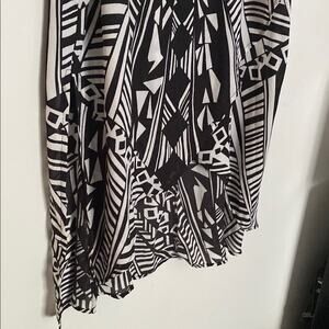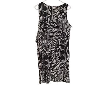 This Spense sundress showcases a striking black and white geometric pattern, perfect for casual or resort wear. The sleeveless design and scoop neckline offer a breezy feel. Ideal for warm weather, this dress combines style and comfort effortlessly.