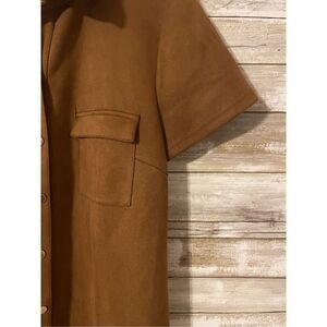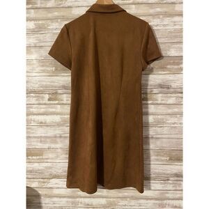 Spense Brown Short Sleeve Suede Button Up Dress Size 12 Knee Length