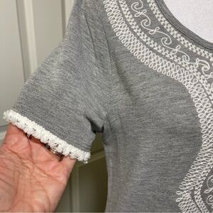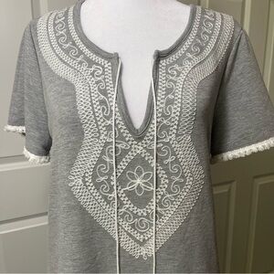 Spense Embroidered Dress Short Sleeve Heather Gray Boho Pullover A-Line Coverup