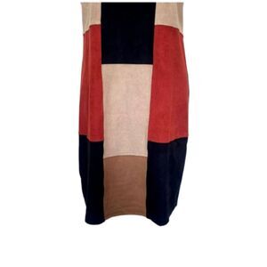 Spense Faux Suede Patchwork Shift Dress Retro 60s 70s Fall Colors Size 12
